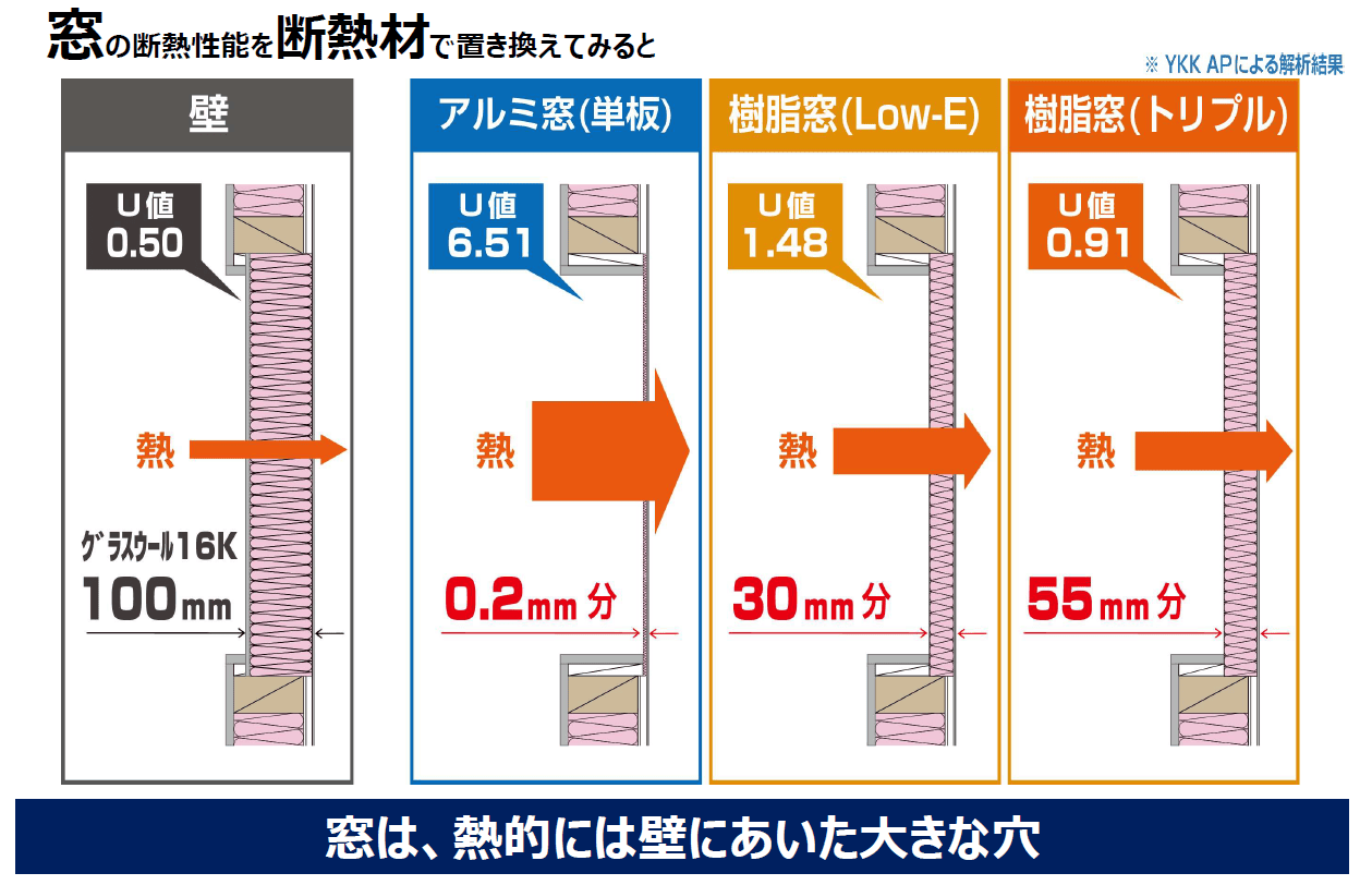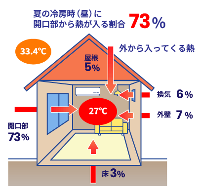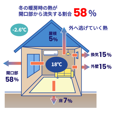 →屋根や壁よりも、圧倒的に窓の影響が大きいことがわかっています。