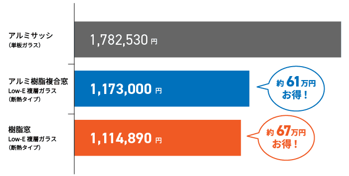 アルミサッシ+単板ガラス から 樹脂窓+複層ガラス への変更で、