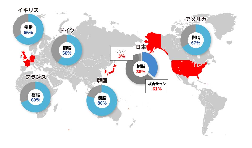 アルミは熱を伝えやすいため、断熱性能の面では世界的に見て不利な素材です。