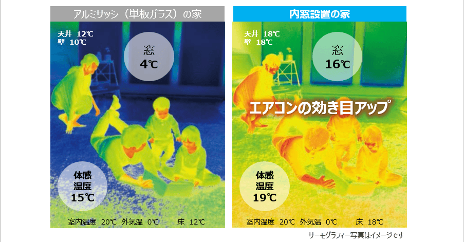 壁や窓に体温を奪われなくなるため、エアコンの設定温度を上げなくても、体の芯からポカポカと暖かく過ごせるようになるのです。