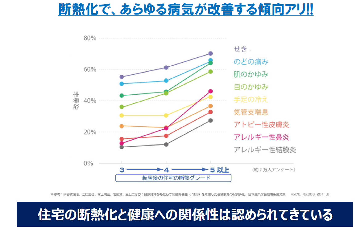 窓リノベの効果は、単なる光熱費の節約だけではありません。断熱リフォームを行った多くの居住者が、転居後に健康状態の劇的な改善を実感しています。